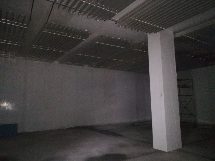 冷庫采用120mm聚氨酯保溫板雙面彩鋼板,地面鋪設(shè)100mm擠塑板后鋪設(shè)100mm水泥。